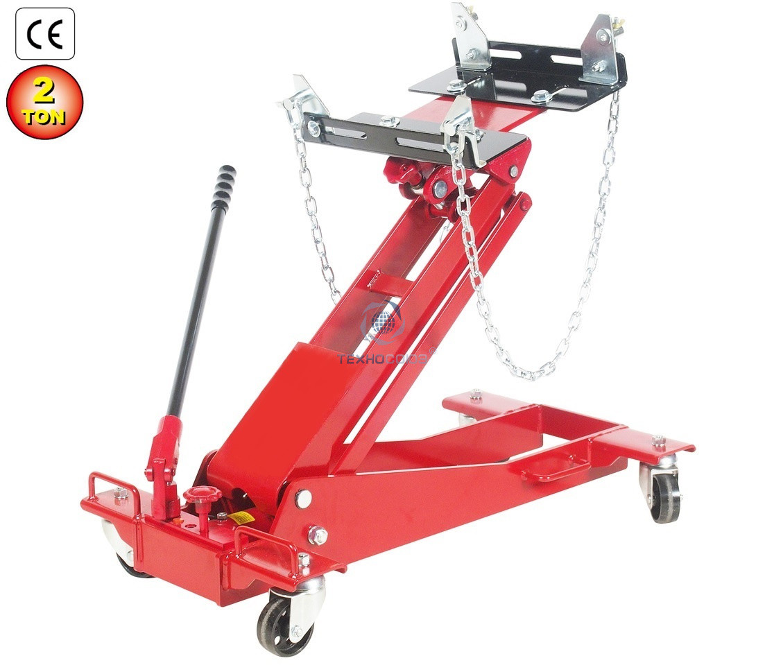 Домкрат трансмиссионный для снятия/установки ОСОБО ТЯЖЕЛЫХ АГРЕГАТОВ (КПП, мостов и т.п.) г/п 2 т. Подъем 230-880 мм. Маневренная – все колеса поворотные. Оборудована страховочной цепью, для фиксации агрегата. Приемная площадка без регулировки угла наклона.